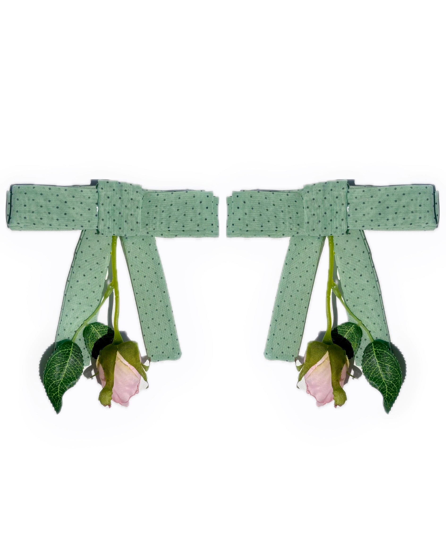 こちらはミディアムヘアの方やお団子ヘア三つ編みヘアに適したヘアアクセサリーになります。通常版に比べて普段使いしやすいのもMINIならではの特徴です。