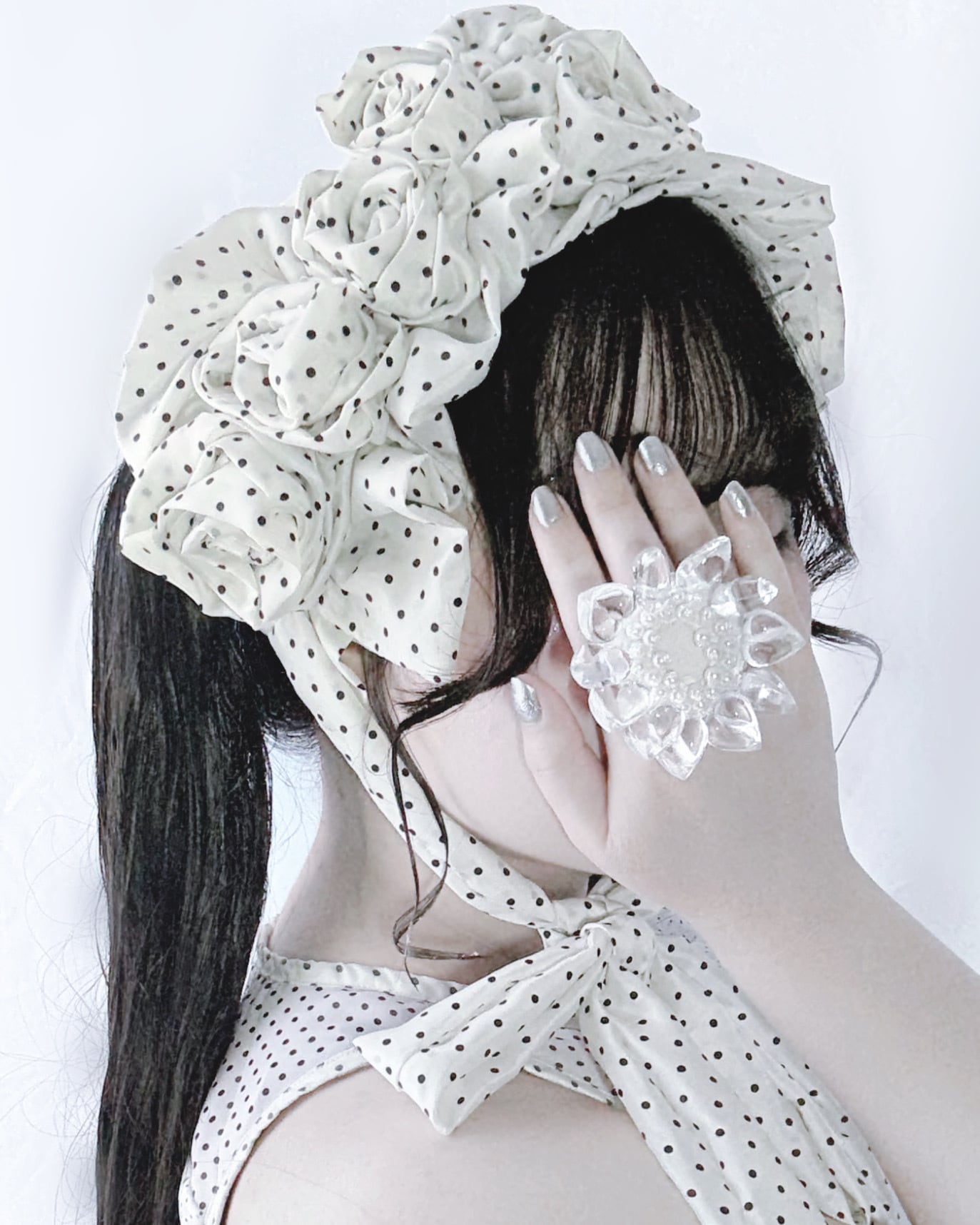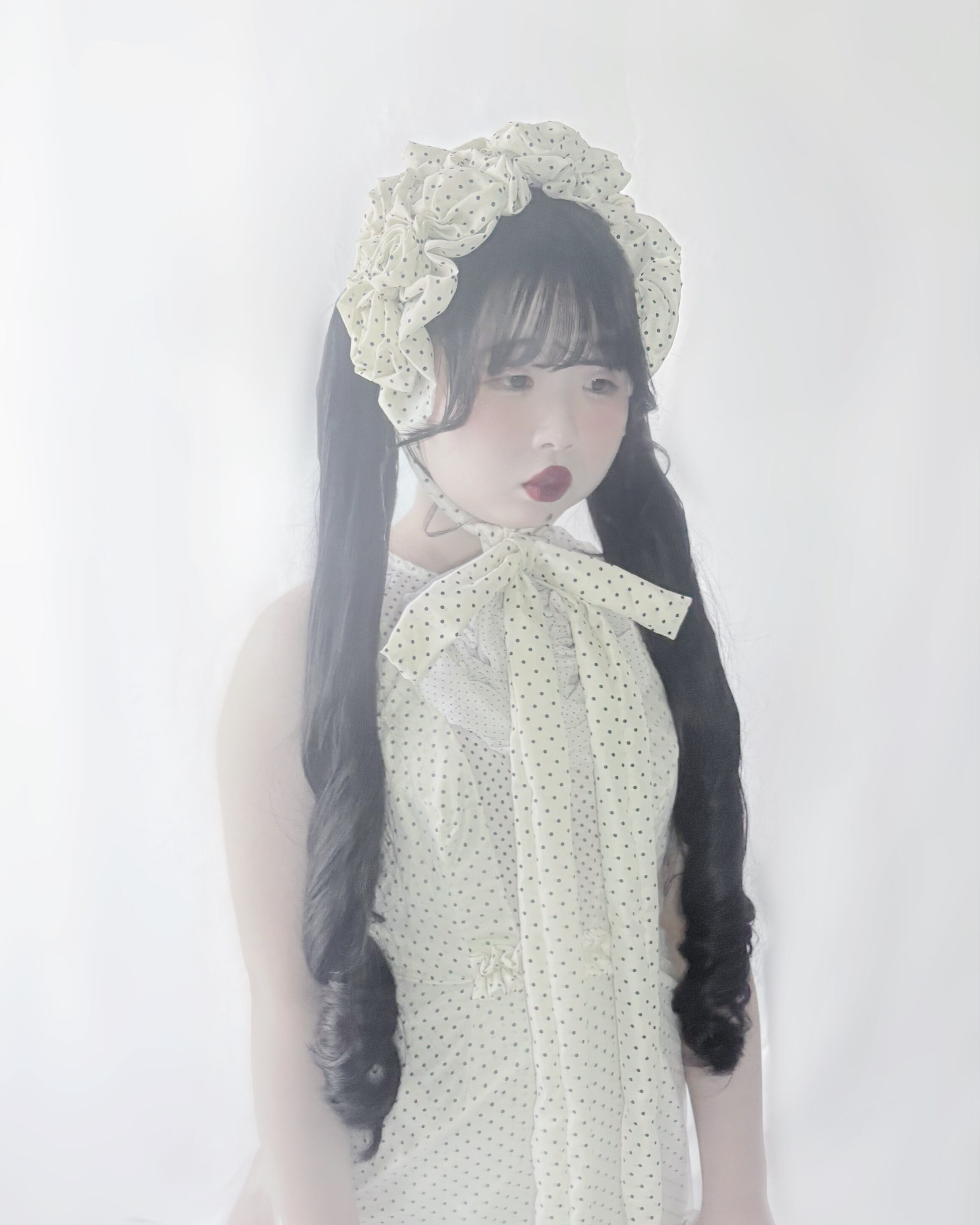 首元で結ぶリボンは足元までありとっても長いです。シンプルなファッションにも薔薇子さんみたいな個性的ファッションにもポイントとなるヘアアクセサリーです。