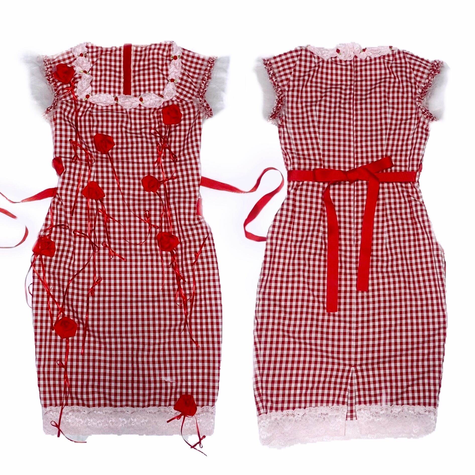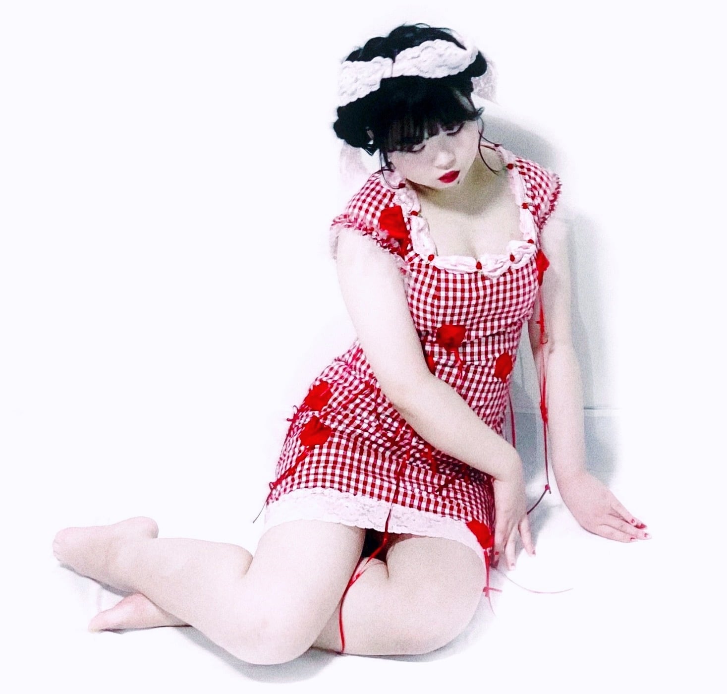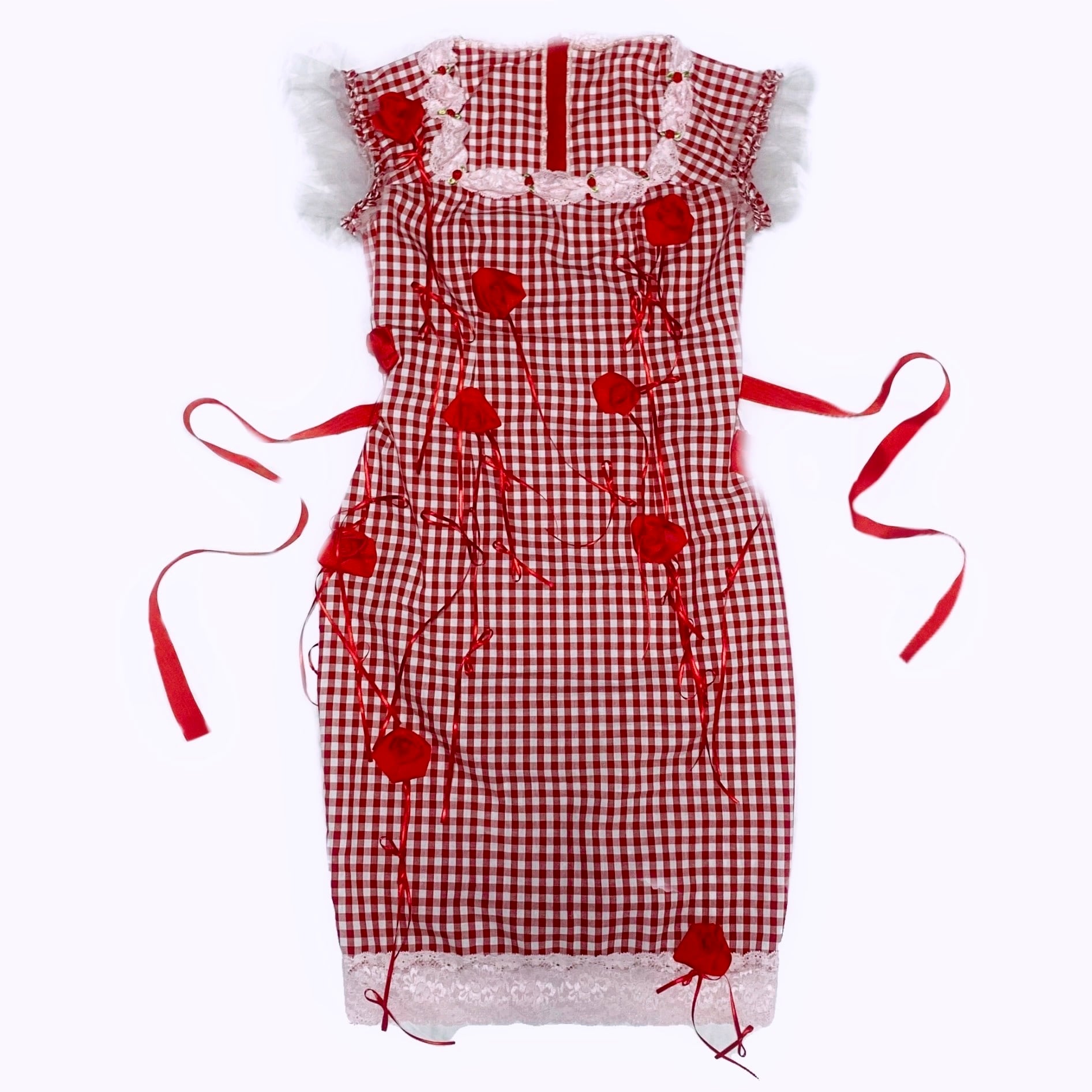 お砂糖のような甘い甘いフリルやレースがベースの生地に薔薇を纏わせた、まさに薔薇の砂糖漬けのようなドレス。
